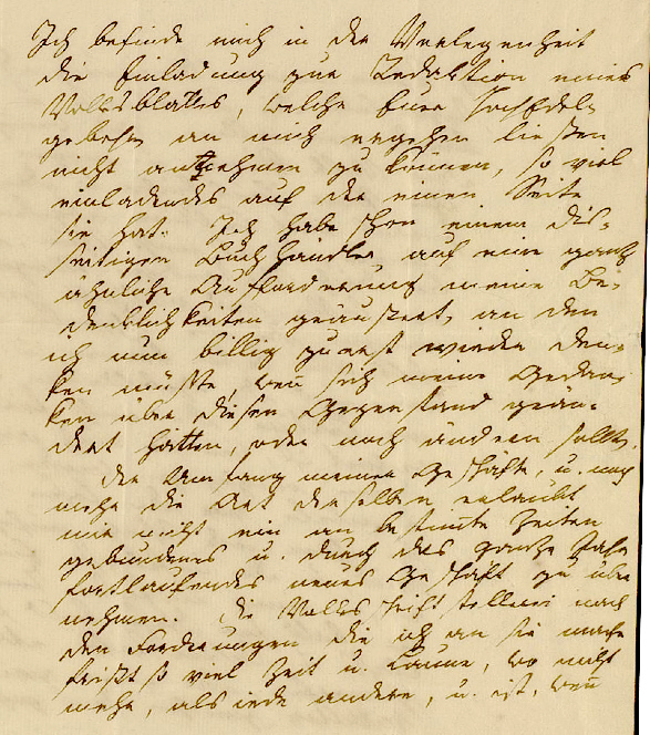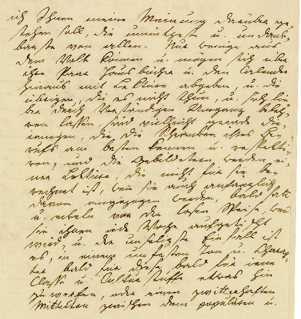 Ich befinde mich in der Verlegenheit die Einladung zur Redaktion eines Volksblattes, welche Eure Hochedel- geboren an mich ergehen ließen nicht an einladendes auf der einen Seite sie hat. Ich habe schon einem dies- seitigen Buchhändler auf eine ganz ähnliche Aufforderung meine Be- denklichkeiten geäußert, an den ich nun billig zuerst wieder den- ken müßte, wen sich meine Gedan- ken über diesen Gegenstand geän- dert hätten, oder noch ändern sollten. Der Umfang meiner Geschäfte, u. noch mehr die Art derselben erlaubt mir nicht ein an bestimte Zeiten gebundenes und durch das ganze Jahr fortlaufendes neues Geschäft zu über- nehmen. Die Volksschriftstellerei nach den Forderungen die ich an sie mache frißt so viel Zeit u. Laune, wo nicht mehr, als iede andere, u. ist, wen |