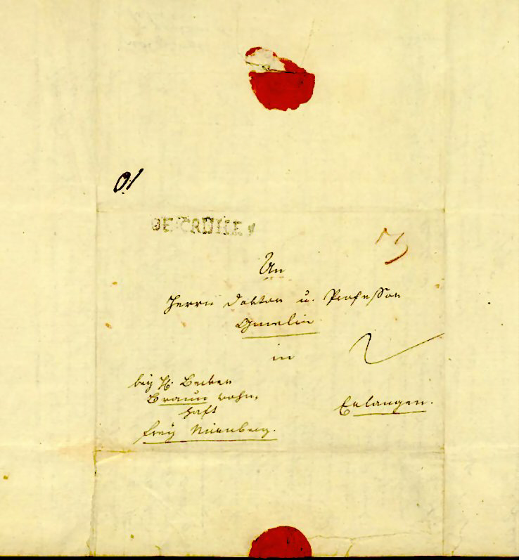 An Herrn Doktor und Professor Gmelin in bey H. Becker Braun wohn- haft Erlangen frey Nürnberg |