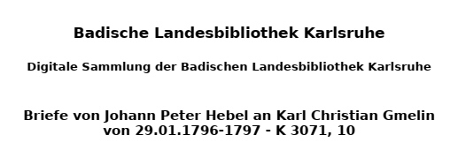 Chremnitzer = Ungarische Goldmünze Lichen pubescens = Flechte (in Baden sehr selten), verm. eine Anspielung auf G. Fecht Kaufmann = Küfermeister Kaufmann, Gmelins Karlsruher Hauswirt Das verschanzte Lager = Diese wurde am 1. Januar 1797 eingenommen, was die Datierung des Briefes auf den 2. Jan. 97 ermöglicht.