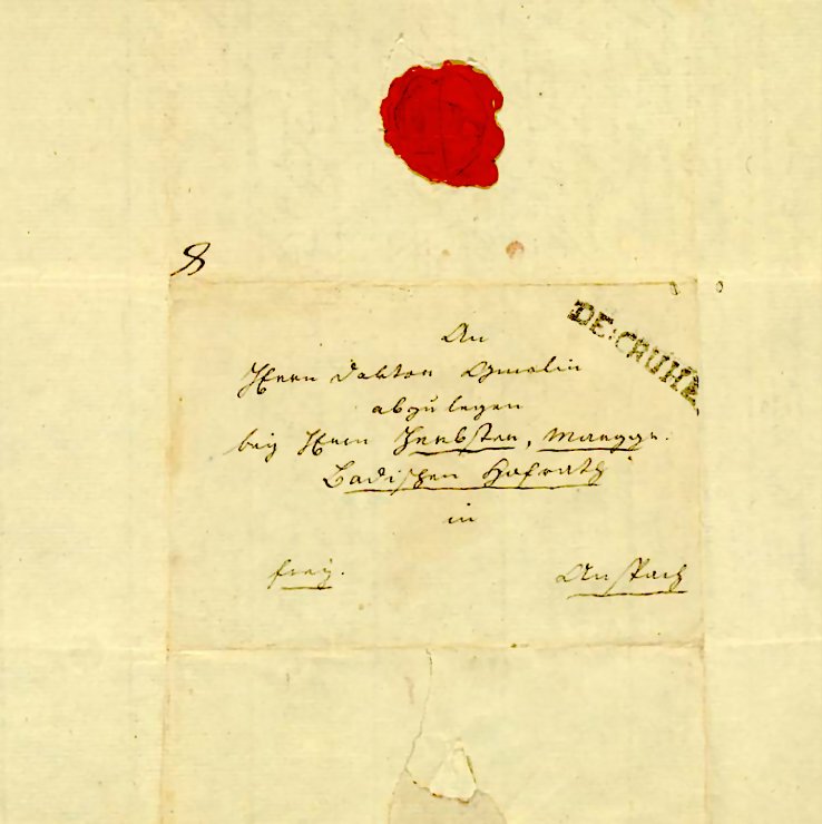 An Herrn Doktor Gmelin abzulegen bey Herrn Herbster , Marggr. Badischer Hofrath in frey Anspach |