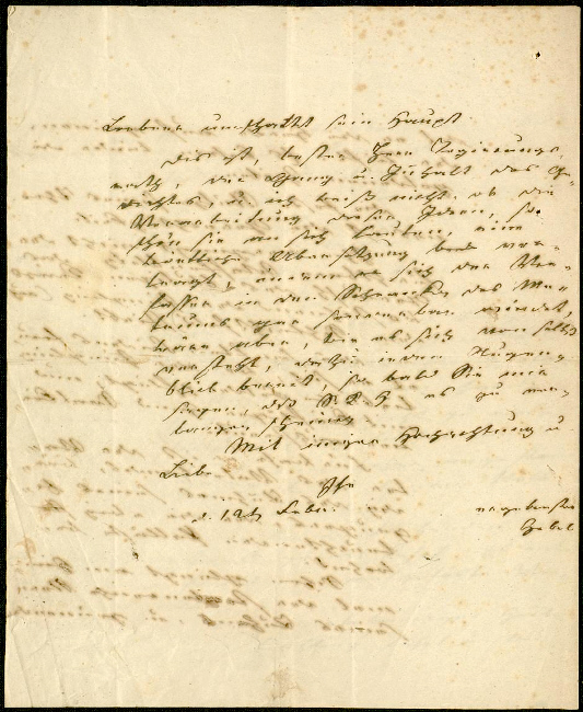 Ich sende Ihnen theuerster Herr Regie- rungsrath u. Freund das mitgetheil- te Gedicht ergebenst zurück. Wen der Verfasser eine ande- re Absicht gehabt hätte, als an dem Geburtstag seines Souveräns, durch Darlegung seiner Gefühle sein Herz zu befridigen, so möch- te ich es wohl mit einem Spe- cimen philologicum eines stu- direnden Jünglings verglei- chen, der das griechische Me- trum kent, seinen Horaz gele- sen hat, und sich nun lobens- werth in den ersten, wen auch noch unglücklichen Versu- chen der Nachahmung übt. Er will den Tag heiliger Fei- er besingen, an welchem dem beglückten Baden das größte u beste zu Theil ward, was die Himlischen ihm gewähren konten. |